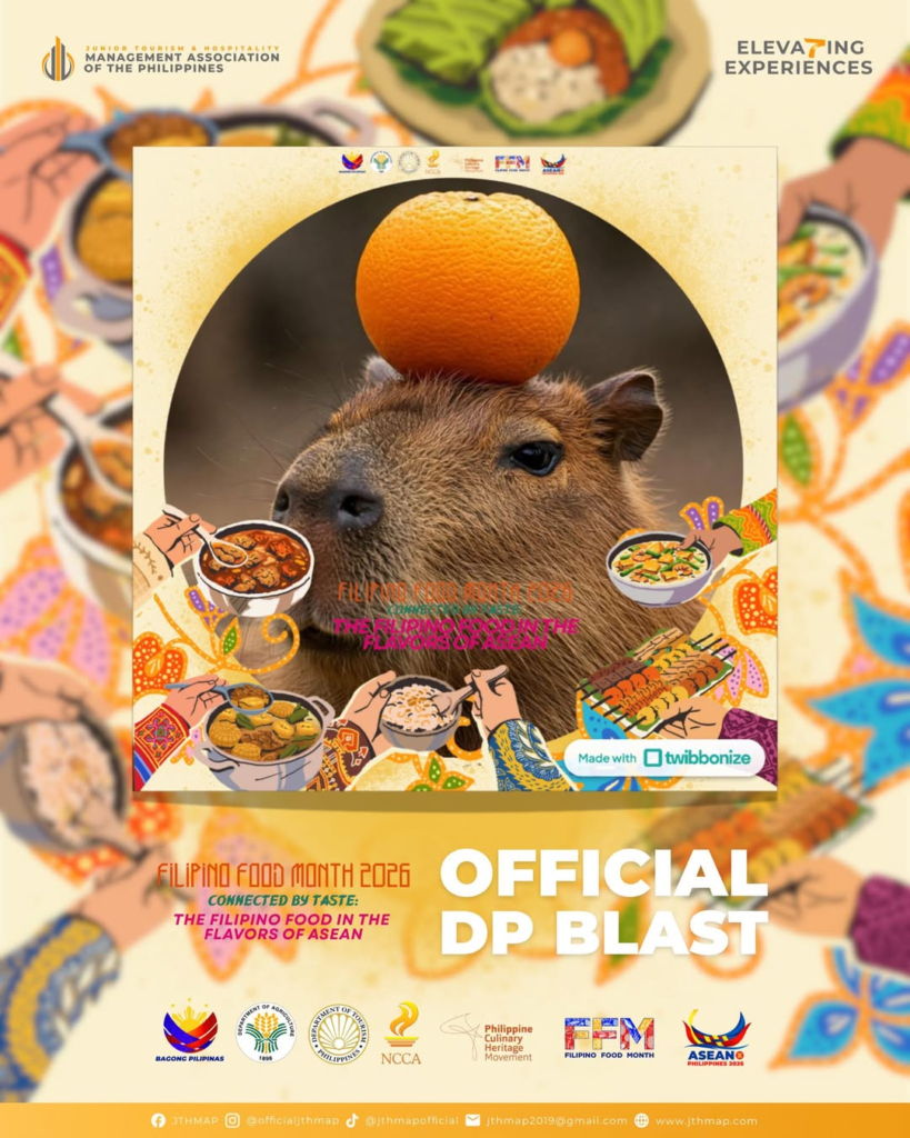 Iโm [๐ฌ๐ผ๐๐ฟ ๐ก๐ฎ๐บ๐ฒ], a proud member of the Junior Tourism and Hospitality Management Association of the Philippines (JTHMAP), joining the celebration of Filipino Food Month 2026 with pride in our rich culinary heritage and its role in connecting us across ASEAN.